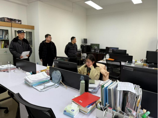 120上午,公司党委副书记王文锋副经理彭江涛、院办主任石毅等一行对公司办公楼、研究生实验室进行全面深入的安全检查,并在楼梯口、实验室等显著部位张贴安全提醒