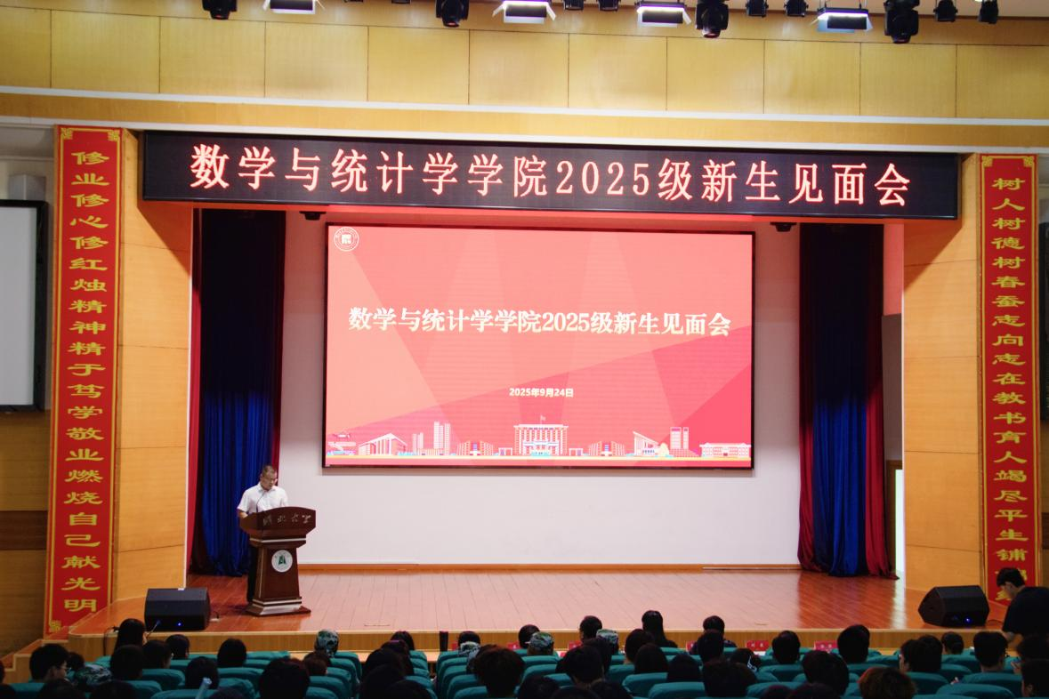 随后,数学系主任涂强和统计系主任许芳分别就各专业的培养目标、课程体系与发展前景作了系统介绍,帮助初入大学的新生明晰专业方向,增强学习信心。教师代表刘展老师用数学语言寄语青年员工,以好奇心为灯,以坚韧心为笔,在数字的星空中找到属于自己的成长坐标。同时,她还送给了新生三个“数字锦囊”,一是用“基础变量”筑牢根基;二是以“迭代思维”拥抱挑战;三是用“应用维度”拓展边界。