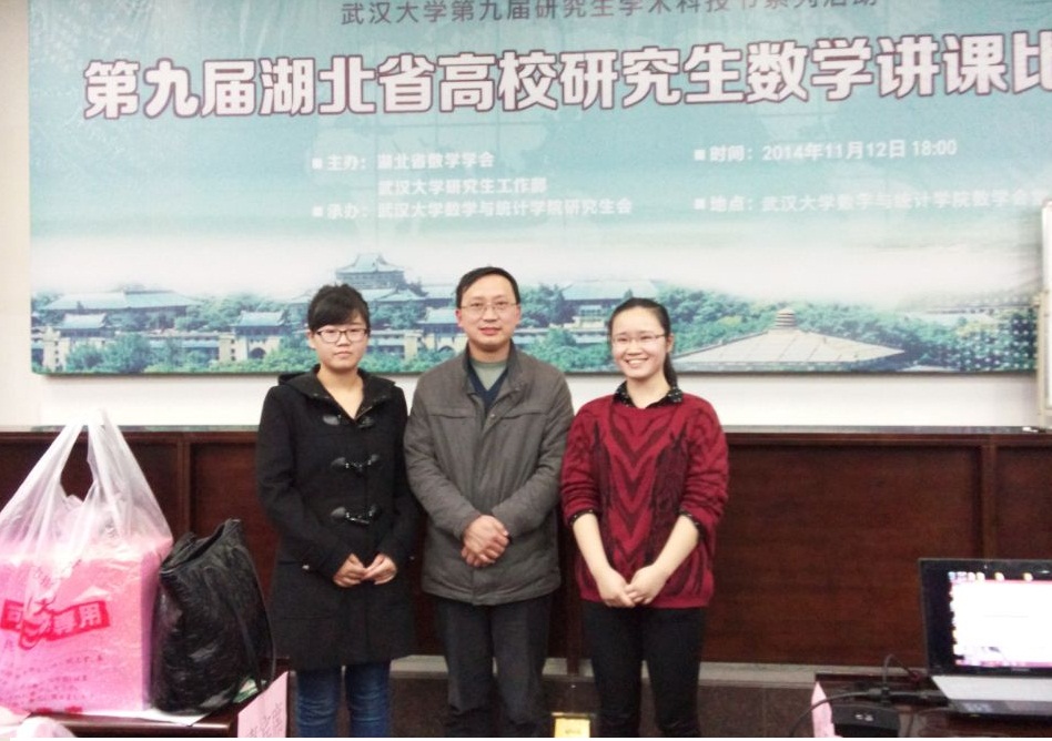 11月12日,第九届湖北省高校研究生数学讲课比赛在武汉大学举行,公司硕士研究生郑诗萍、沈燕云囊获全部2个一等奖。