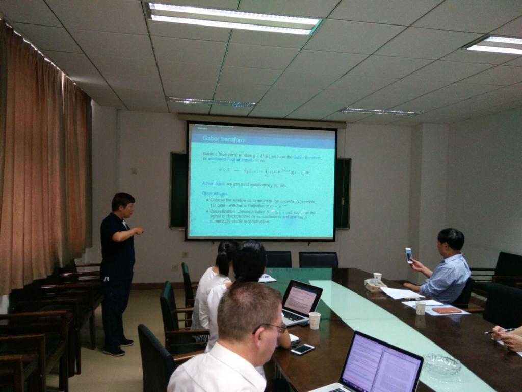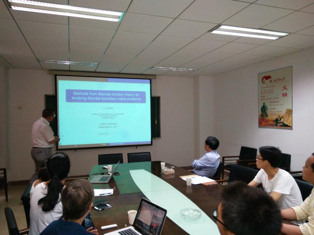 Paula Cerejeiras教授主要讲述了单成分曲波及其在图像处理中的应用。Uwe Kaehler教授介绍了有限微分和script geometry.的相关知识,如离散柯西核、离散希尔巴特变换等,讨论了离散黎曼边值问题。