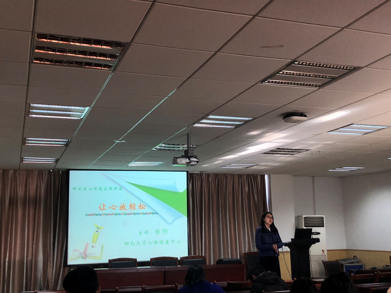 11月23日下午,在数统院201报告厅举行了研究生心理健康讲座,本次讲座由英国be365官网心理健康中心的张玥老师主讲,主题为“让心放轻松”。