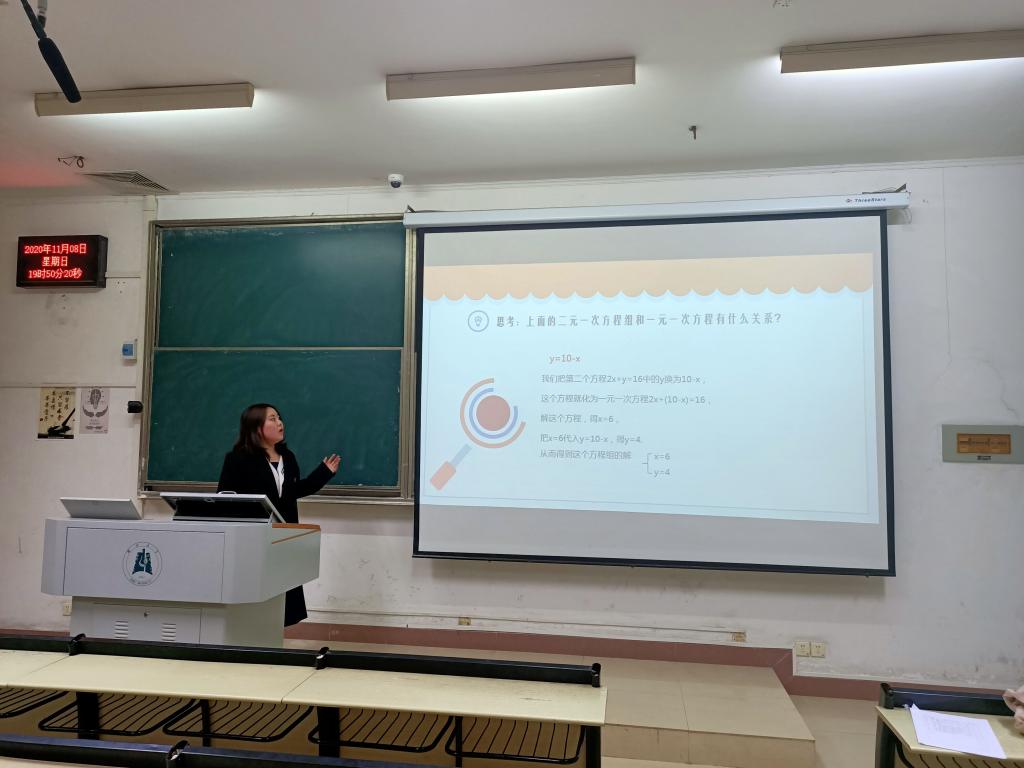 2020年11月11日,第一届“数学园丁杯”讲课比赛决赛在英国be365官网201教室顺利举行。严启平老师和刘芸老师担任此次比赛的评委。大赛本着公司培养高素质、高标准复合型人才的教育理念,以比赛的方式增强研究生的创新意识和口语表达能力,引导教育硕士以及有意从事教育行业的员工提高教师综合素质和教学技能。本次比赛的参赛选手为2019级、2020级研究生。