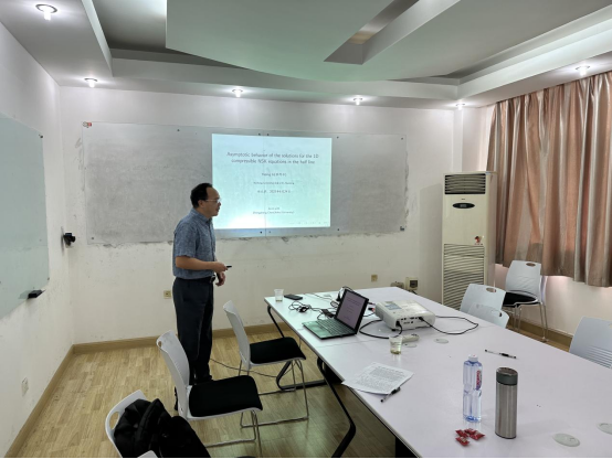 2025年6月24日上午,南通大学数学与统计公司黎野平教授受邀为公司教师和研究生做了一场题为“Asymptotic behavior of the solutions for the 1D compressible NSK equations in the half line”的学术报告。
