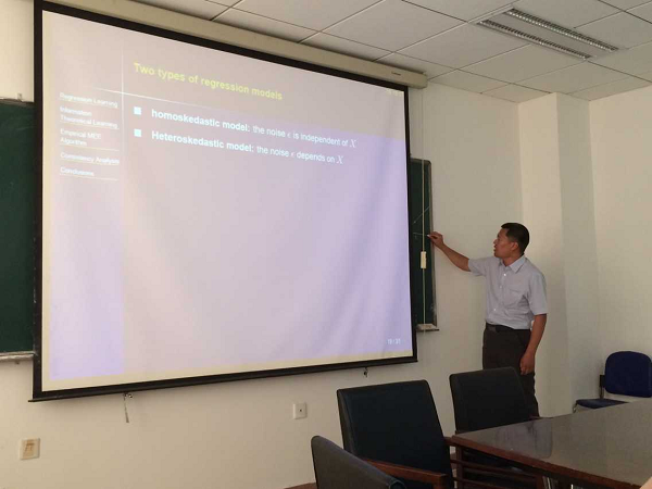 在报告中,吴强博士从学习理论的角度出发,由线性回归引入最小误差熵算法,详细地讨论了误差熵收敛和回归收敛之间的差别,给出了不同条件下最小误差熵算法的误差熵收敛和回归收敛性能。