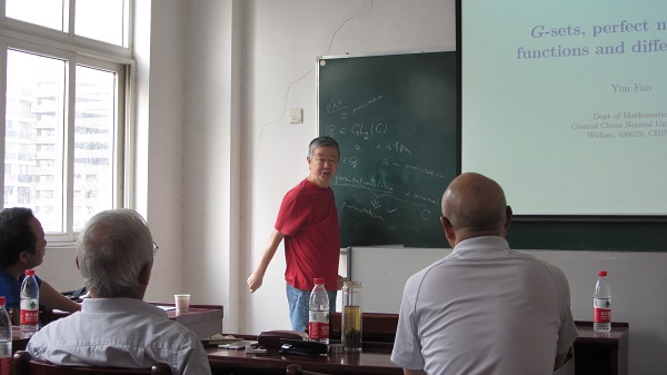 樊恽教授作了题为“G-sets,perfect nonlinear functions and difference sets”的学术报告。他归纳总结了在工程技术中遇到的一些问题,抽象出完全非线性函数的概念,并运用数学手段来研究这些问题。同时,他介绍了G-集的概念,并对G-集的群论性质作了详细介绍,且对目前的G-集与差集这个研究领域作了大致回顾。