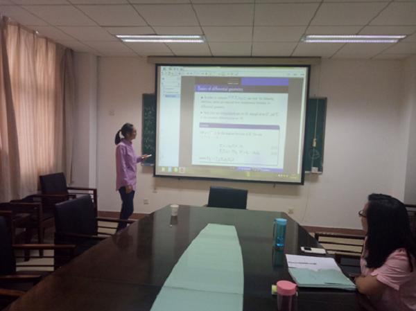 黄勇教授以“凸体的闵可夫斯基问题”为主题为公司师生详细介绍了闵可夫斯基问题,对偶闵可夫斯基问题的研究背景,国内外研究现状,以凸几何展开,给出了经典的Alesandorov‘s volume variational formulas,该工作已被ACTA接收!