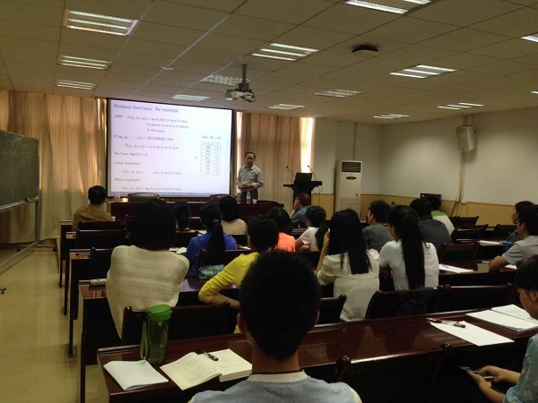 张卫国教授就如何解决蜂窝序列复用距离和序列集中序列个数的折中这一难题进行了详细地说明。报告首先介绍了如何把密码函数的构造方法用于具有正交性的序列(集)的设计,然后利用向量半Bent函数实现了大正交序列集的设计,使每个序列集具有较多的序列,且使序列集排成的蜂窝族具有较大的复用距离,最后提出了进一步可以讨论的问题。报告内容丰富详尽,思路清晰,对所提出的问题认识深刻,使在场师生对相关前沿课题有了更深入全面的了解,获益良多。