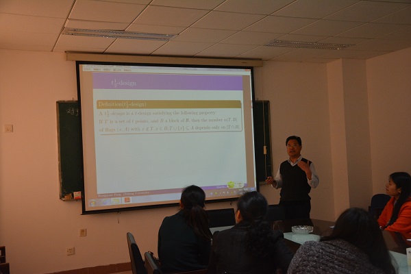 2015年3月24日下午,北京大学数学科学公司博士生导师冯荣权教授应邀来访公司,为公司师生做了一场题为《(1+1/2)-design, its construction and applications》的学术报告。