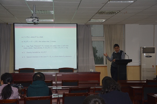 11月27日上午,美国加州大学欧文分校万大庆教授在公司201报告厅为相关专业教师和研究生作了一场题为《How many values a polynomial misses?》的学术报告。