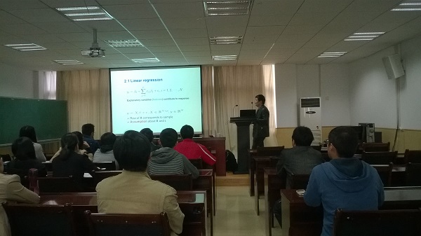 报告中,戴道清教授首先为大家讲述了当前稀疏回归方法的研究情况以及自己在该领域的研究成果,然后戴教授又用浅显生动的例子来为大家讲述稀疏回归方法在生物识别、经济数据分析、面部识别、图像处理等方面的应用前景。随后,戴教授还和到会的师生进行了热烈的讨论,解答了大家在学习研究过程中遇到的许多疑问,气氛非常活跃。