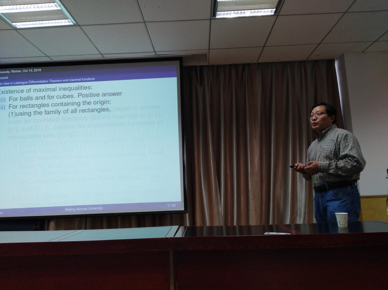 10月15日,北京师范大学数学科学公司薛庆营教授应邀来访公司,在公司201报告厅为师生做了题为《Regularity and continuity of the multilinear strong maximal operators》的学术报告。