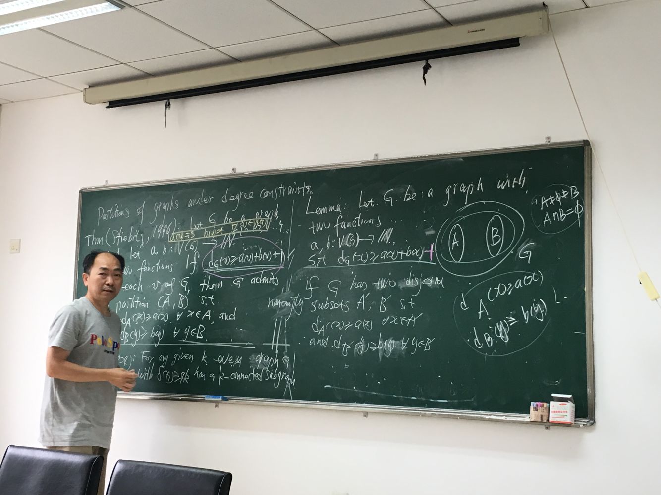 5月26日,南京师范大学许宝刚教授应邀来访公司,在院203报告厅为公司师生做了题为“Results and problems on partition of multigraphs with degree constraints”的学术报告,报告由公司的刘慧清教授主持。来自运筹学与控制论专业的教师、博士和硕士研究生参加了本次学术报告。