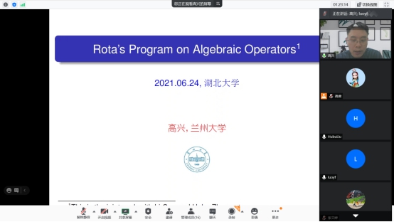 高兴教授做了题为“Rota's Program on Algebraic Operators”的报告,首先指出Rota的见解可以广泛地应用于其他代数结构,如LieAlgebras。然后综述了关于Associative Algebras和Lie Algebras上线性算子的Rota程序的动机、早期发展和最近的进展。最后给出其应用。