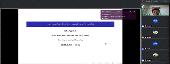 计省进老师的报告题目是《Zero (total) forcing number of graphs》,计省进老师首先向大家介绍了报告相关的概念,接着就向大家报告了他们团队对于图的强迫数和全强迫数的界的研究成果。