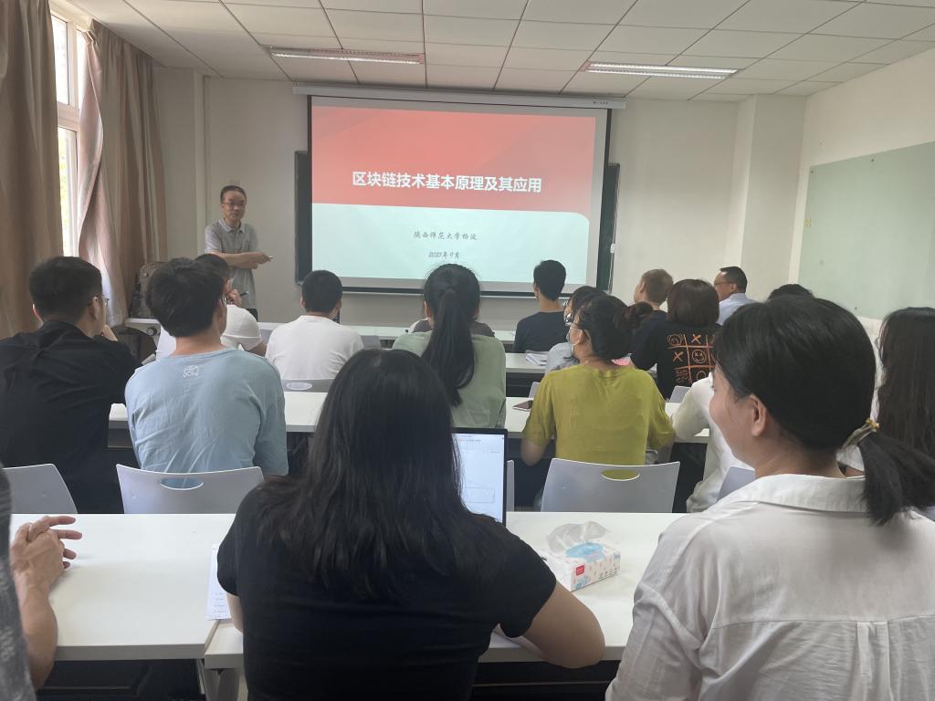 2021年9月13日上午,陕西师范大学杨波教授应公司李念教授邀请,在公司203报告厅为公司师生作了题为《区块链技术基本原理及应用》的学术报告。