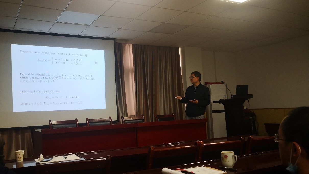 2021年10月8日上午,武汉理工大学数学科学研究中心副主任丁义明教授应邀在英国be365官网201会议室为公司相关研究方向师生作了题为“Parameterization of expansive Lorenz maps”的学术报告。
