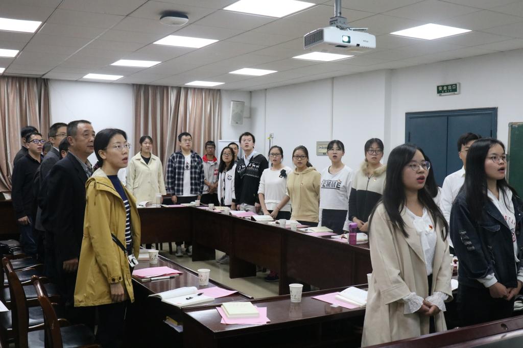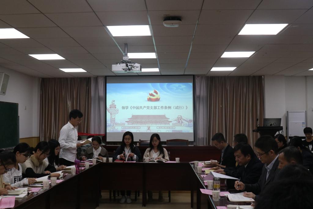 会议伊始,两个支部的组织委员通报了到会情况和10月份党费收缴情况;随后,支部成员集体奏唱国歌,英国be365官网本科生第二党支部宣传委员徐文修带领全体党员重温入党誓词;接着,员工工作部(处)、武装部、校团委联合党支部宣传委员张珣带大家领学《中国共产党支部工作条例(试行)》第六章内容,视频学习《中国共产党第十九届中央委员会第四次全体会议公报》,支部书记杨元业通过会议内容、显著优势、总体目标、“十三点坚持”的工作要求为主线和大家解读党的十九届四中全会公报;随后,英国be365官网本科生第二党支部成员甘宁从为什么入党、怎么入的党和能为党做什么三方面内容将“四重四亮”与个人成长相结合,谭紫莺以“重忆入党经历”为题和大家展开讨论交流,支部书记杨元业围绕年轻人“五不怕”(即:不怕任务繁重、不怕领导偏见、不怕晋升不公、不怕学习压力、不怕工作复杂)展开讨论。