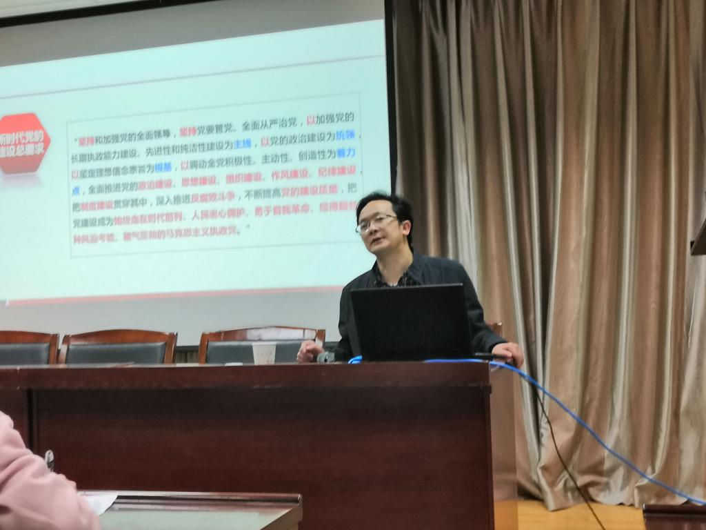 在报告中,熊友华教授讲到,十九大报告强调要坚定不移推进全面从严治党,把党的建设的伟大工程引向深入指明了道路。提出了新时代党的建设总要求。其主要内容包括新时代的建设布局背景,新时代的建设新布局和落实新时代的建设新布局的八项任务。新时代的新使命提出了党建新要求,新时代提出了党建新任务,新世情提出了党建新形势。同时熊友华教授通过PPT展示了我国近五年取得的成就。用朴素的事实给大家上了生动的一课。