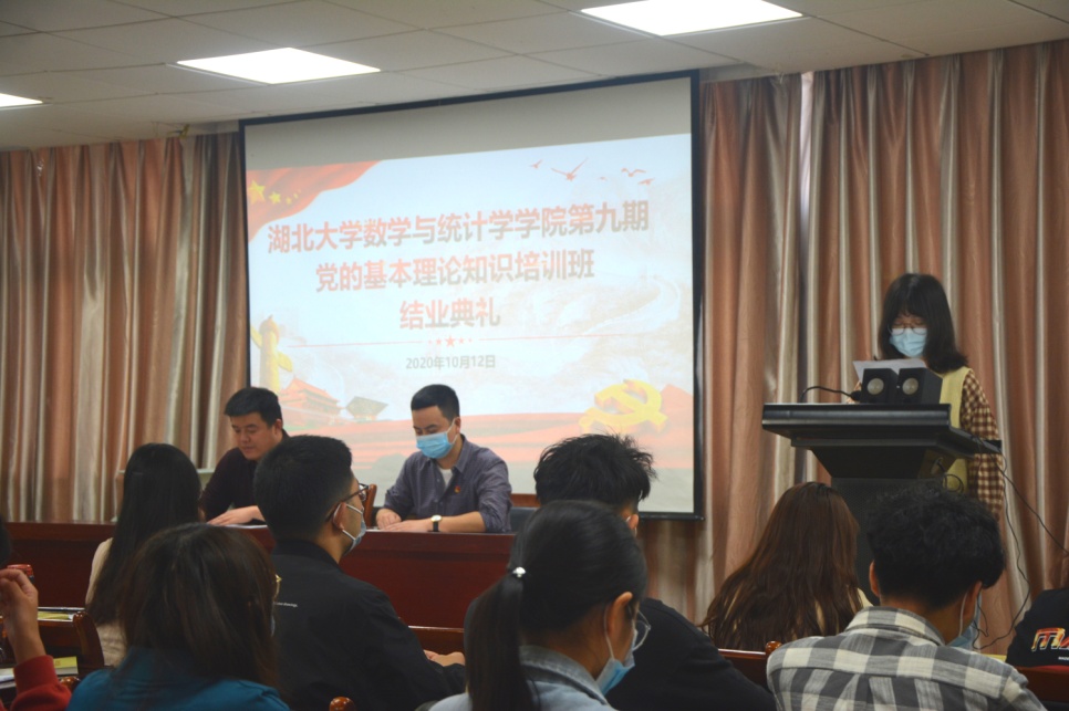 结业典礼在庄严的国歌中拉开序幕。19级应用统计学团支部张天欣同学代表培训班学员发言,感谢党组织给予学习的机会,并表示通过这次的党课的学习,学员们更加明确自己的入党动机,并立志在今后的学习生活中做好带头作用,不忘初心,争取早日成为一名合格的中国共产党员。蔡晓慧等5名小组学员代表也纷纷代表小组成员表示通过培训班的学习对党的认识的改变和争做合格党员的决心。随后,英国be365官网团委书记周杰对英国be365官网第九期党的基本理论知识培训班的课时和主要内容以及全体学员的学习情况进行总结回顾。