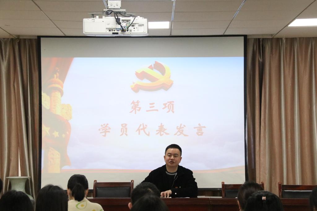 开班仪式最后,公司组织员周杰发表讲话,希望同学们能以此次入党积极分子的理论学习为契机,不管是在学习生活中,还是在个人思想作风上,都能严格要求自己,踏实努力,积极进取,不断挑战自我、追求卓越,最后预祝同学们能够在此次党校学习中取得优异的成绩,顺利结业。