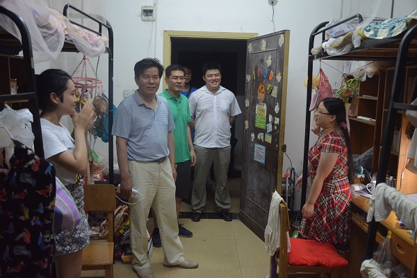 在2015届毕业生即将离校之际,6月16日晚,公司党委书记游春林、经理曾祥勇、副经理黄朝炎、党委副书记陆伟等在毕业班班主任和辅导员老师的陪同下深入三期公寓看望即将离校的毕业生。