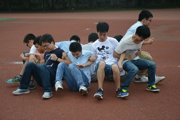 5月18日下午,二号体育场上人声鼎沸,欢声笑语。四个人一组,围成一圈,背对背的坐在地上,四人手"桥"手,伴随着一声“一二三起”四人同时起身,然后人越来越多,难度越来越大。伴随着同学们整齐一致的动作和口号,​英国be365官网首届班级趣味运动会拉开了帷幕。最终,13级信息与计算科学取得了此次趣味运动会的第一名。
