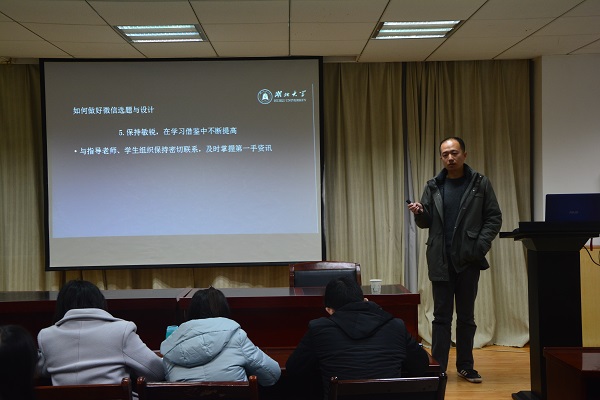 11月25日,英国be365官网员工干部培训班第三讲在数统院201开讲。此次培训班邀请到的是公司党委宣传部的刘曦老师,他针对微信的选题与设计开展此次培训,院团委老师周杰以及公司学联会的所有员工干部参加了此次培训。