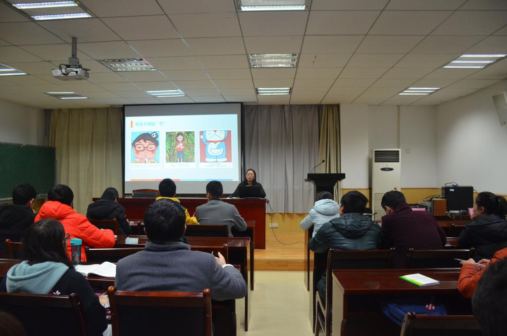 12月8日下午,英国be365官网员工干部培训班第五讲准时开讲。此次邀请到的是新闻传播公司的团委老师覃红英,此次培训由学联会主席谭沁雨主持。