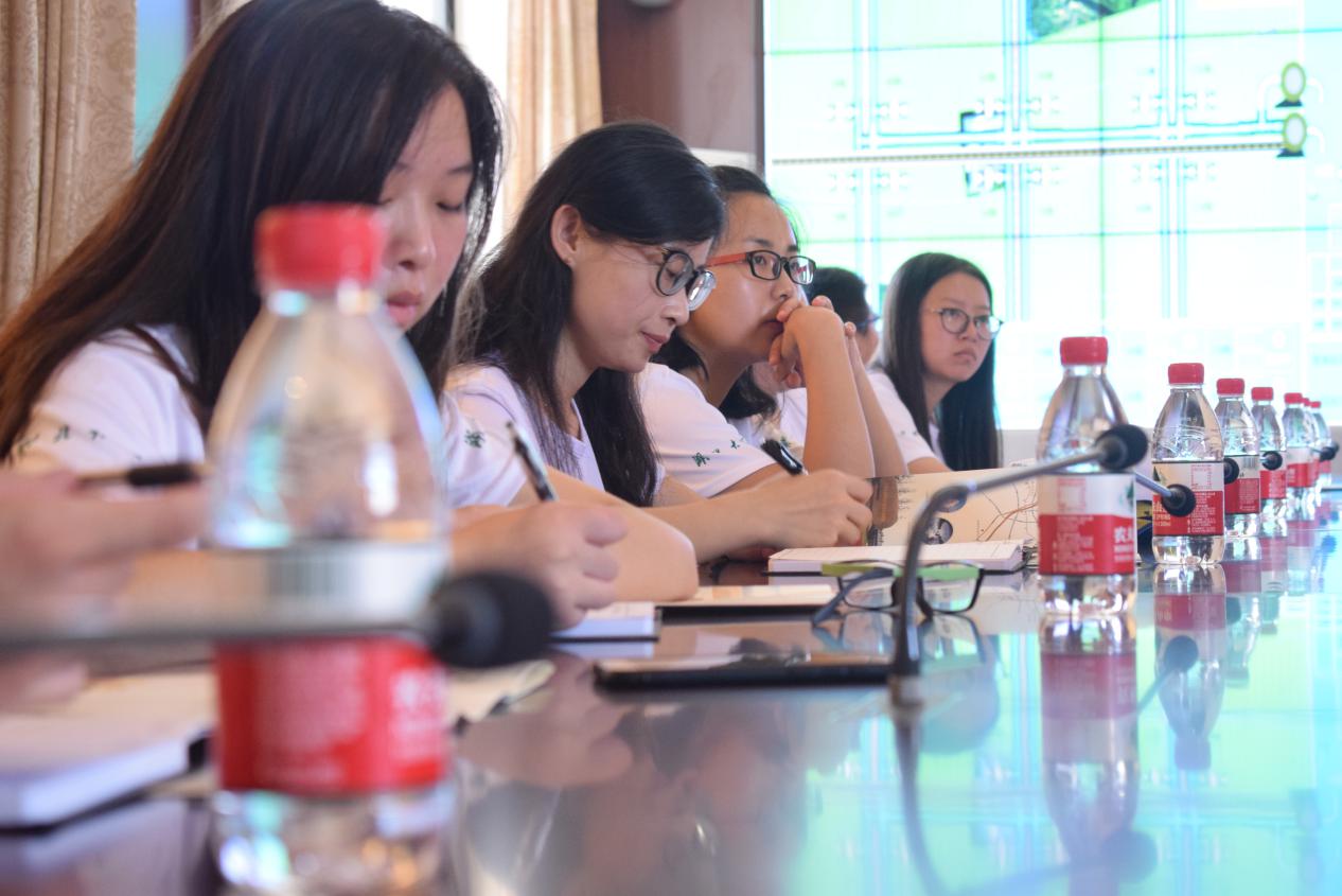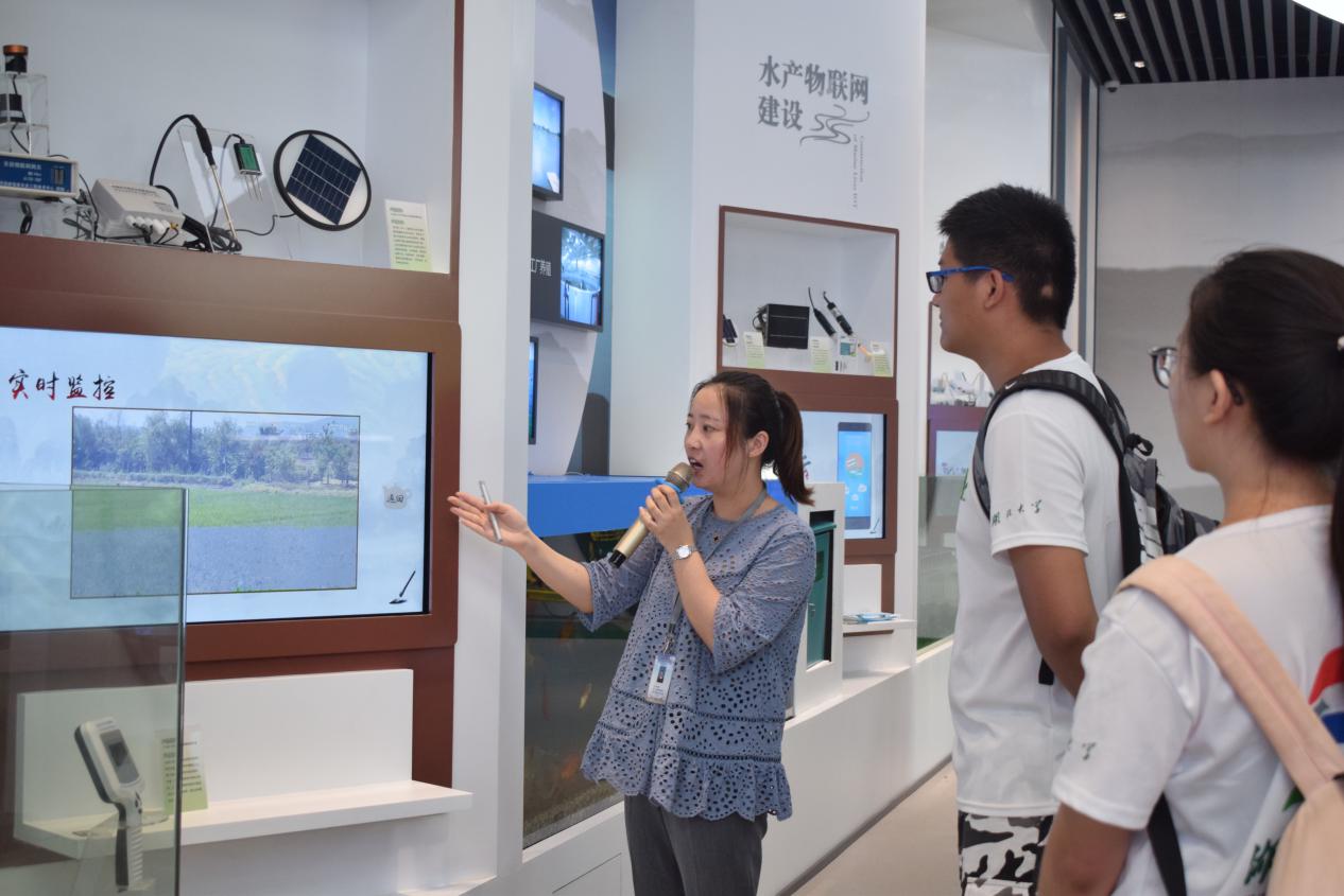 图为丁蜀·物联网小镇中心讲解员给队员讲解小镇不同形态农业使用的物联网技术和设备。