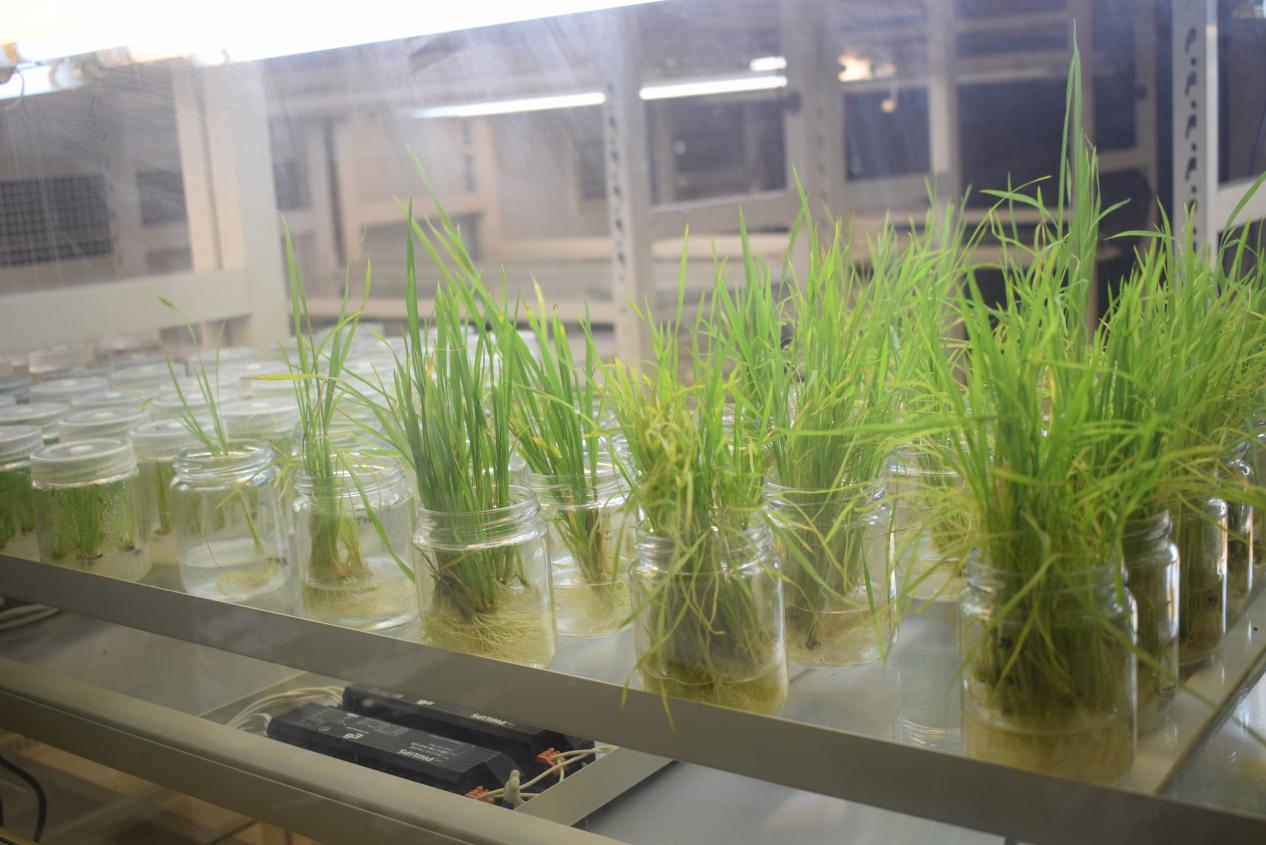 图为调研团队在台湾农民创业园的无土栽培实验研究室参观了解智慧农业相关技术。