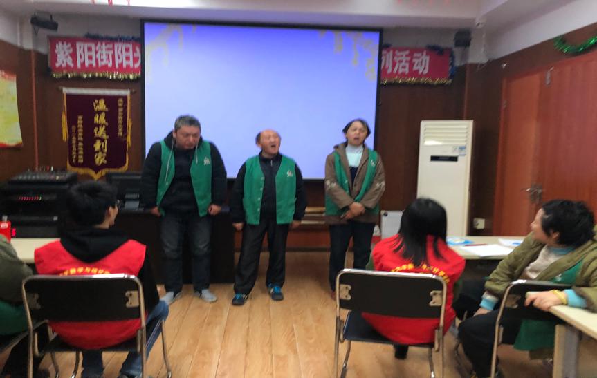 活动开始时,所有的志愿者重新介绍了一遍自己,让服务对象对我们更加熟悉,让接下来的活动开展的更加顺利,然后由小老师的一个问题引出来时针如何看懂的主题。小老师在仔细耐心的讲解了时针、分钟、秒钟的区别以及它们之间的关系,小老师又教服务对象如何在时钟上指出现在几时几分,接着抛出关于时针转动时间的算法的问题让所有的服务对象精神更加集中了。之后我们开展了三个小游戏,分别猜五官、火车往哪儿开和报数字,让服务对象在刚刚紧张的氛围里的得到了舒缓,开心地与志愿者展开了小游戏,游戏中输家将会表演,现场的氛围更是欢快和愉悦。接着高天同学教了所有志愿者一首《大中国》让服务对象沉浸在美妙的歌中不能自拔。最后在所有服务对象的歌声中结束了这次有意义的志愿活动。