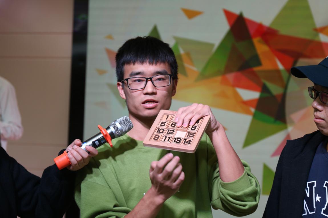本次决赛除四轮比赛过程还穿插有“数统好声音”嘉宾歌曲演唱,数学建模协会会长“我与数模”演讲,数字华容道、孔明锁“湖大吉尼斯”记录者现场演示和现场抽奖等环节,为观众带来视听盛宴的同时为参赛选手缓解紧张的心情。“最开始我以为决赛肯定很凝重,没想到这些题目这么有趣还有嘉宾表演,‘吉尼斯’记录者展示完还现场传授经验,关键是我还能被手把手教学解孔明锁,可惜抽奖没有抽到我,不过写有数字的书签太好看了我要留下来!”现场观众郭文珊说道。