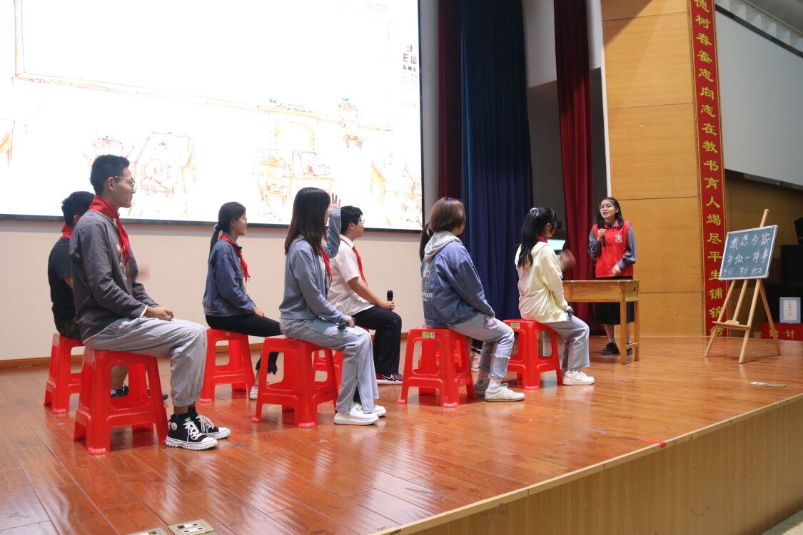 大会第一环节为活力团支部风采展示,由在省校两级活力团支部风采大赛中取得优异成绩的三个团支部依次进行风采展示,分别是汉语言文学(国家基地班)1901团支部、“小书童”支教团团支部、思想政治教育2001班团支部。整个展示过程通过情景剧的方式,展现了各个团支部的突出特色与活力。