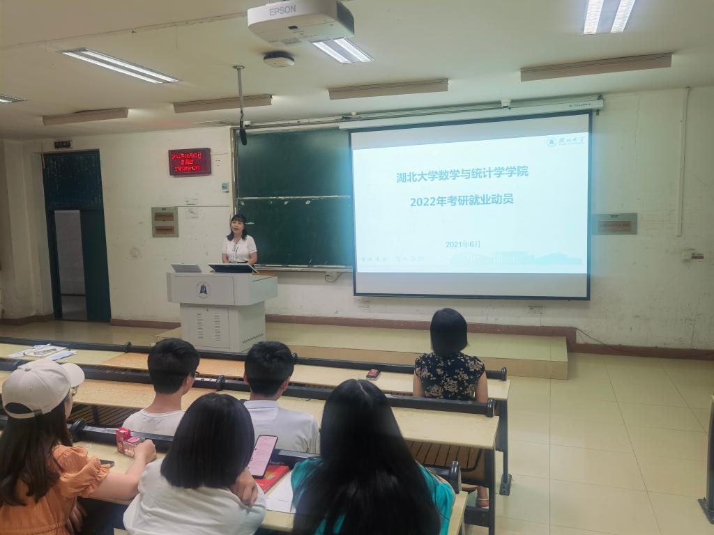 2021年6月3日下午,英国be365官网在教四105召开2018级考研就业动员大会。公司党委副书记何肖、副经理向妮、辅导员马荣及公司2018级全体同学参加了此次大会。大会由马荣主持。