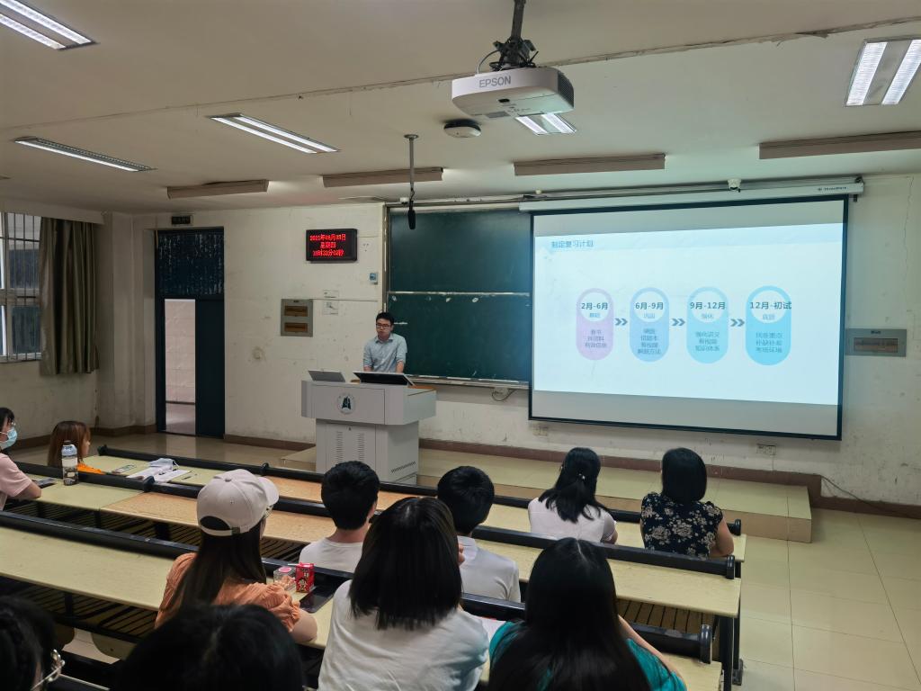 首先,2017级考研上岸的三位同学雷琪、刘洋和侯文慧依次分享考研经验和备考心路历程。雷琪同学主要就专业课复习方法及考研作息向大家分享自己的经验;刘洋同学重点提到一定要查阅最新的指定参考书目;上岸本校应用数学专业的侯文慧同学为大家详细讲述选择本校原因,她提到要站在客观的角度,以自己的能力和心态为基础选择目标院校,而不是盲目从众地报考外校。