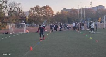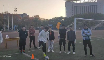 此次比赛共有运球绕杆接力、围圈带球冲刺、一对一攻防、点球大战四个比赛项目。秉承公平公正原则,参赛人员随机组成五队。本场比赛采用积分制,以区分比赛名次。比赛前,同学们都积极热身准备,跃跃欲试,争取取得一个好名次。