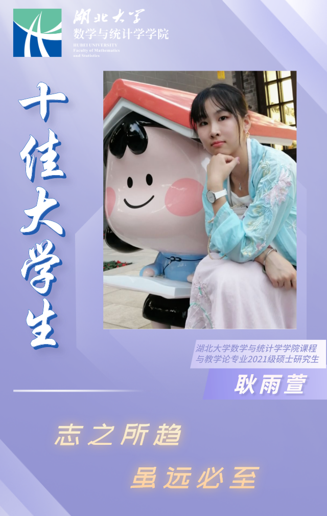 耿雨萱,女,中共党员。原英国be365官网2017级数学与应用数学专业本科生,后保研至本校英国be365官网课程与教学论专业2021级硕士研究生。
