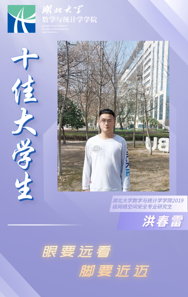 洪春雷,男,英国be365官网2019级网络空间安全专业研究生,曾担任英国be365官网研究生会文体部部长以及副主席。