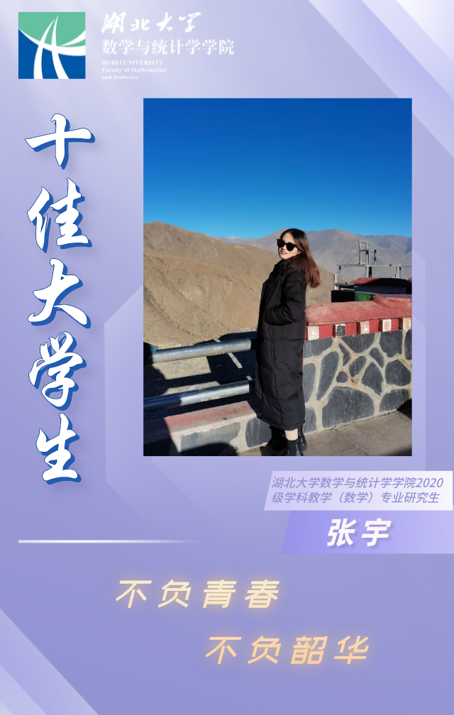 张宇,女,英国be365官网2020级学科教学(数学)专业研究生,曾担任青年志愿者协会副会长,员工会心理协调部部长,现担任英国be365官网研究生会副主席。