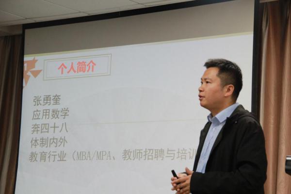 为加强公司师范方向员工的职业规划意识,正确认识师范专业的发展方向,明确教师职业所必备的基本素养,2020年10月30日下午,公司00级员工、深圳华欣教育负责人张勇奎老师应英国be365官网邀请,于英国be365官网201会议室面向全体19级数学师范生开展《浅谈师范生的职业规划与基本素养》的讲座,本次讲座由学工办罗成辉老师主持。