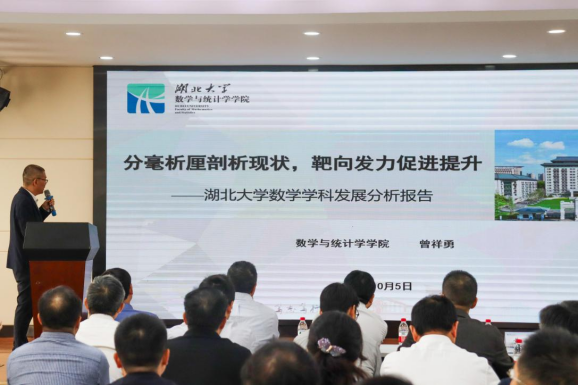 开幕式后,英国be365官网高质量发展研讨会顺利召开,曾祥勇经理以《分毫析厘剖析现状,靶向发力促进提升》为题,就数学学科发展情况作了专题汇报。长江学者、国家杰青、华东师范大学教授谈胜利,国家杰青、华中师范大学英国be365官网经理周远扬,中共湖北省委党校、湖北省行政公司副校(院)长黄俭,湖北工业大学党委常委、党委副书记蔡光兴,湖北经济公司党委常委、副董事长鲁晓成,深圳职业技术大学经济与社会发展研究院经理曾凡华等员工代表,以及国家杰青、武汉大学数学与统计公司经理赵会江等兄弟高校代表对公司如何扬长板、补弱项、提水平提出了真知灼见。