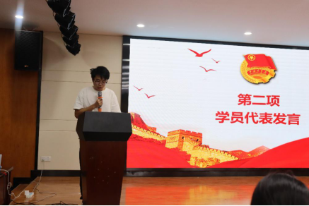 典礼伊始,全体学员齐唱《光荣啊,中国共青团》,歌声嘹亮、激昂,充满了对共青团事业的热爱与忠诚。随后,2022级数学师范二班唐国栋作为学员代表发言,他首先感谢了公司、授课老师提供的良好学习平台和优质理论知识,呼吁全体学员坚定理想信念,做时代责任的担任者;践行初心使命,做马克思主义理论实践创新成果的实践者。