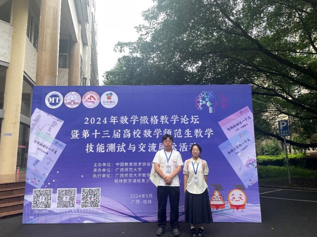 (通讯:刘文琪,严卿)5月17日至20日,2024年数学微格教学论坛暨第十三届高校数学师范生教学技能测试与交流展示活动在广西师范大学举行。公司首次组织员工参加该项赛事,取得了优异的成绩。来自2021级数学师范班的刘文琪、廖倩茹、刘思雨团队获得数学微课设计能力测试一等奖,周心瑜、曹劝团队获得数学微课设计能力测试二等奖,邓畅获得数学微格教学技能测试二等奖。