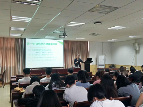 在讲座中,张玥老师以举例、互动的方式,通过真实案例、现场解说、图片资料展示,幽默形象地阐述了研究生生活所触及的各个方面。从环境的变化、人际关系的挑战、对自我的认识和评价、研究生的就业形势四个方面解答了同学们在刚跨入研究生生活所面临的问题,然后逐点剖析并向同学们提出解决的方法,帮助同学们走出了心理上的误区,使同学们对研究生生活有了一个全新的认识。