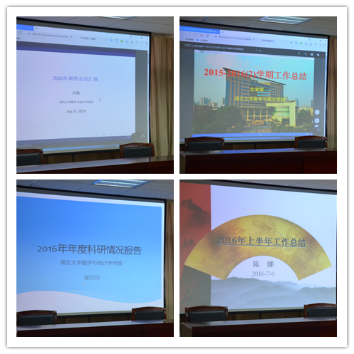 与会的青年教师通过PPT分别对上半年工作情况作了详细地汇报。每位教师都出色地完成了本学期的教学和科研工作,危黎黎老师分享了她在人民大学访问交流的心得,彭江涛老师分享了他本学期从事科学研究工作的体会,郑大彬老师分享了他组织学科评估工作时产生的思考。大家还针对工作中遇到的各种困难和问题进行了反思,为后续工作的开展提供了有益的经验和坚实的基础。