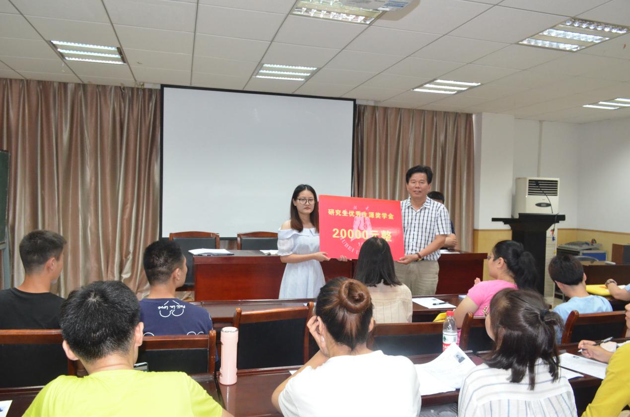 游春林为获得优秀生源奖的研究生新生颁发了奖学金,并对研究生们在校学习生活提出了明确的要求。