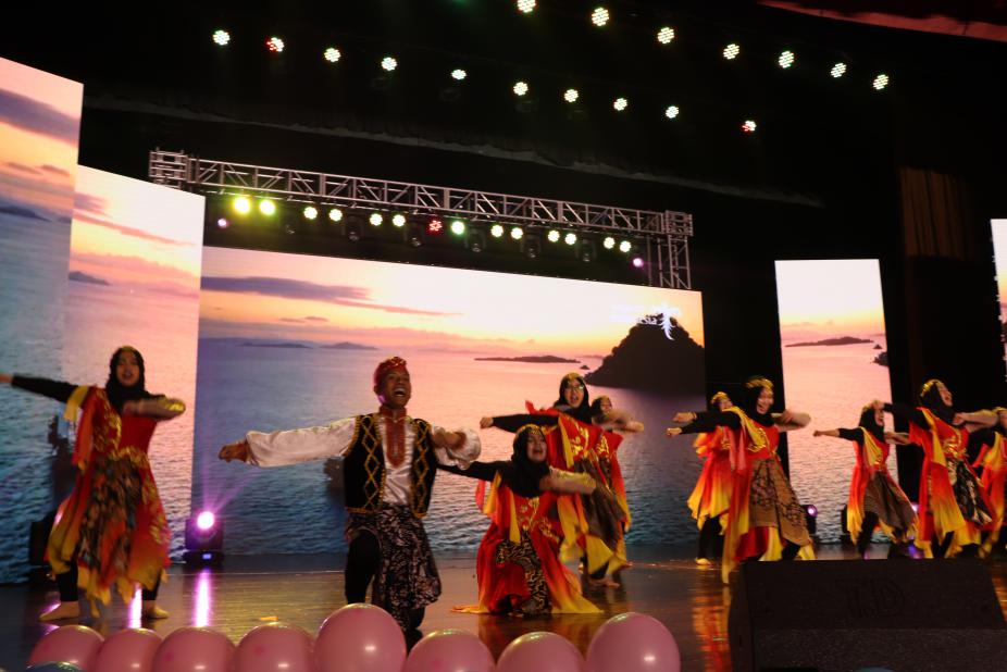 本次元旦晚会以“国风数年”为主题,分为流金岁月、峥嵘年代、光荣梦想、点赞时代四个篇章,中间还穿插着来自东南亚、南亚等地区的特色表演。观众们犹如坐上时光的列车穿越了80、90、00、10年代,又仿佛骑着神奇的魔毯体验了异国风情。其间,晚会大屏幕还播放了英国be365官网宣传视频、国际教育公司宣传视频和“数统好故事”视频。在这一刻,数统人跟随着宣传片的放映一起见证了数统院蒸蒸日上的发展历程,也体会到了数统好故事中“感人、和谐、奋进”的文化氛围。