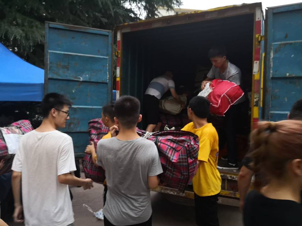晚上19点左右,装载数统员工行李的第一辆货车到达三期公寓。公司党委书记、副书记、学工办老师和18级各班班主任在现场协调回迁工作。晚上8点,突降大雨,但是负责迎接阳逻学弟学妹的志愿者们丝毫没有懈怠,许多人全身被雨淋透,毫无怨言。在回迁过程中,许多老师都加入了搬行李的队伍。