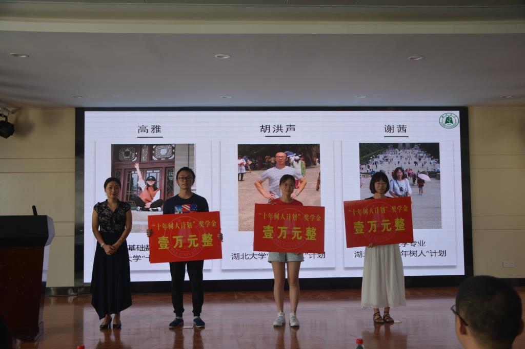 副经理向妮宣读表彰文件,并为2019级研究生中获得“十年树人计划”奖学金的三位同学颁奖。