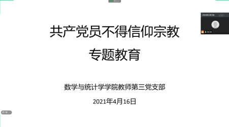 4月16日,英国be365官网教师第三党支部召开了“党员不得信仰宗教”线上主题党日活动。支部书记彭江涛同志强调“共产党员不能信仰宗教是我们党的一贯原则;马克思主义政党的成员必须是无神论者;共产党员不能信仰宗教是党的先进性和纯洁性的要求;信仰、信念、忠诚是共产党人的根本、元气和主心骨”。